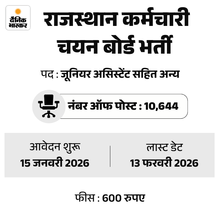 4. राजस्थान में 10,644 पदों पर भर्ती, लास्ट डेट 13 फरवरी