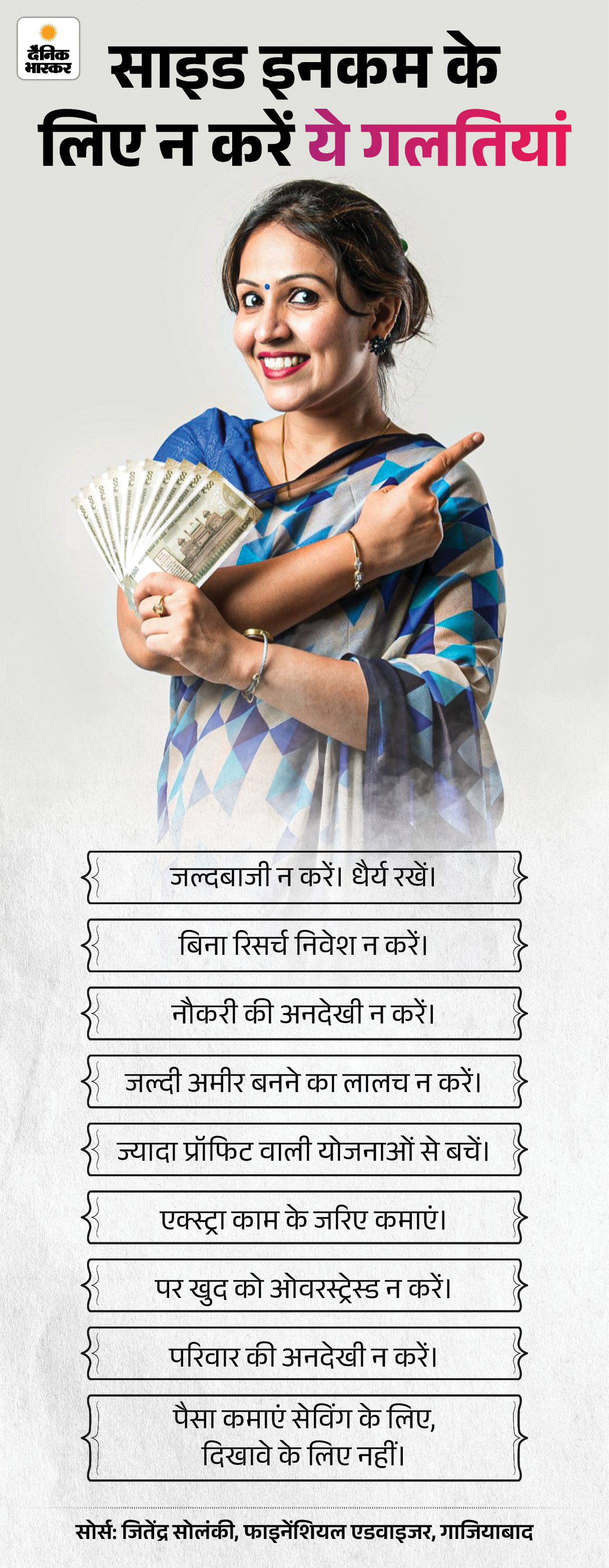 ऐसे में हम जब भी साइड इनकम के बारे में सोचें तो उससे पहले ये समझें कि क्या गलतियां नहीं करनी चाहिए। आइए इसे ग्राफिक के जरिए समझते हैं।