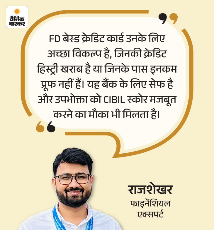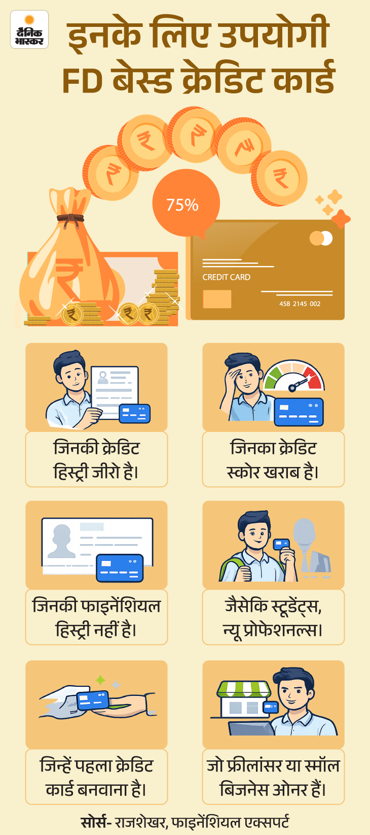 जवाब- FD बेस्ड क्रेडिट कार्ड उन लोगों के लिए अच्छा विकल्प है, जिनकी क्रेडिट हिस्ट्री नहीं है या स्कोर कम है।