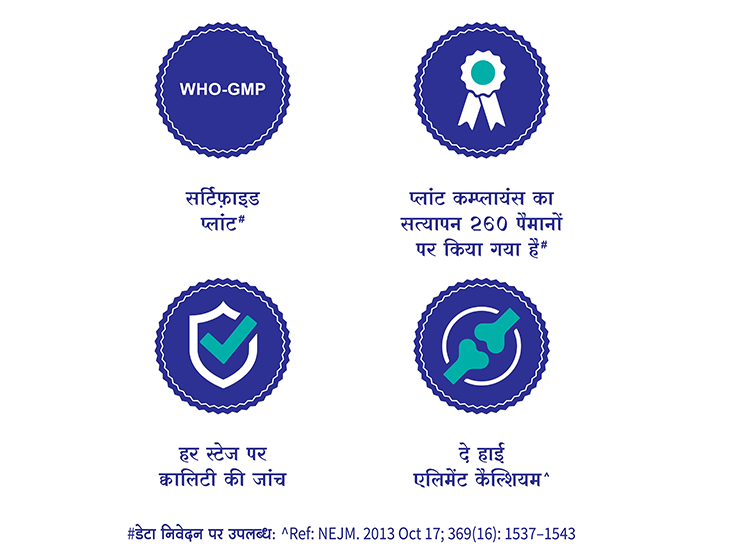 • कैल्शियम की ज़रूरतों के बारे में जानकारी फैलाने के लिए एचसीपी एजुकेशन प्रोग्राम।
