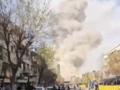 तेहरान में रिहायशी इलाके के पास नजर आता धुंआ।