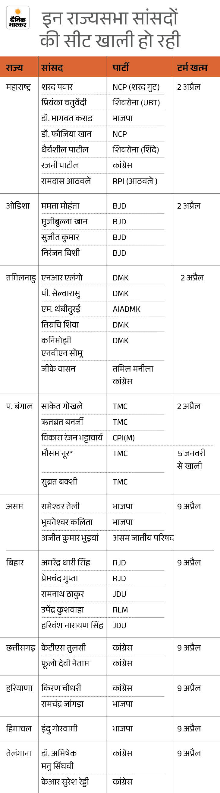 इन 37 राज्यसभा सांसदों का कार्यक्राल अप्रैल में खत्म हो रहा