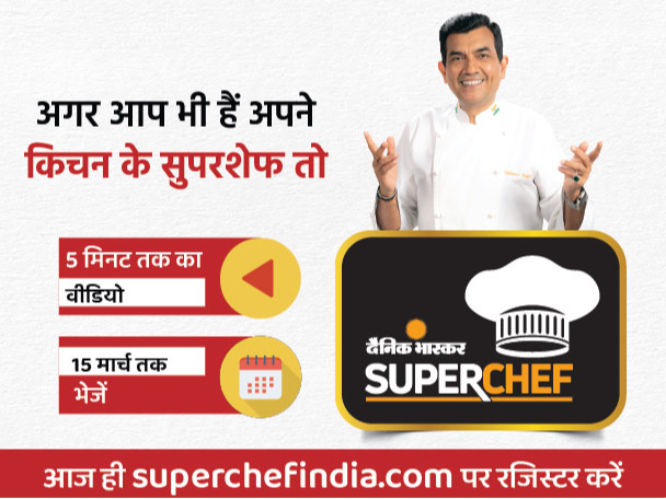 अगर आपको कुकिंग का शौक है और अपने हुनर को नई पहचान देना चाहते हैं, तो दैनिक भास्कर लेकर आया है- सुपरशेफ 2025। एक अनूठी प्रतियोगिता, जो शौकिया शेफ, फूडीज, अनुभवी रसोइयों को अपना कुकिंग टैलेंट दुनिया को दिखाने का शानदार मंच देती है। अपनी पसंदीदा डिश बनाते हुए 5 मिनट तक का वीडियो भेजें और पाएं भारत का पहला सुपरशेफ बनने का मौका! आपकी प्रतिभा को परखेंगे भारत के जाने-माने सेलिब्रिटी शेफ- संजीव कपूर, नीता मेहता और अमीन अली। अगर आपका वीडियो उन्हें पसंद आता है, तो आप बन सकते हैं सुपरशेफ और जीत सकते हैं लाखों के शानदार इनाम! साथ ही हर प्रतिभागी पाठक को वीडियो अपलोड करने पर मिलेगा निश्चित उपहार।
