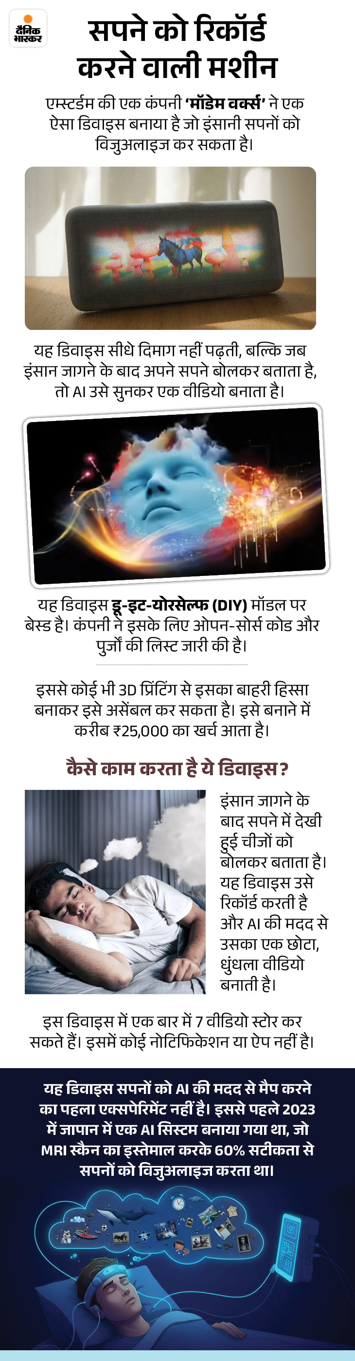 जापान की तरह भारत में भी किराए पर दादा-दादी मिलने की सर्विस शुरू हुई है। वहीं अब सपनों को दोबारा देखने और हमेशा के लिए सेव किया जा सकेगा। इस डिवाइस को एक ट्यूटोरियल की मदद से घर पर ही साधारण खर्च पर बनाया जा सकेगा।