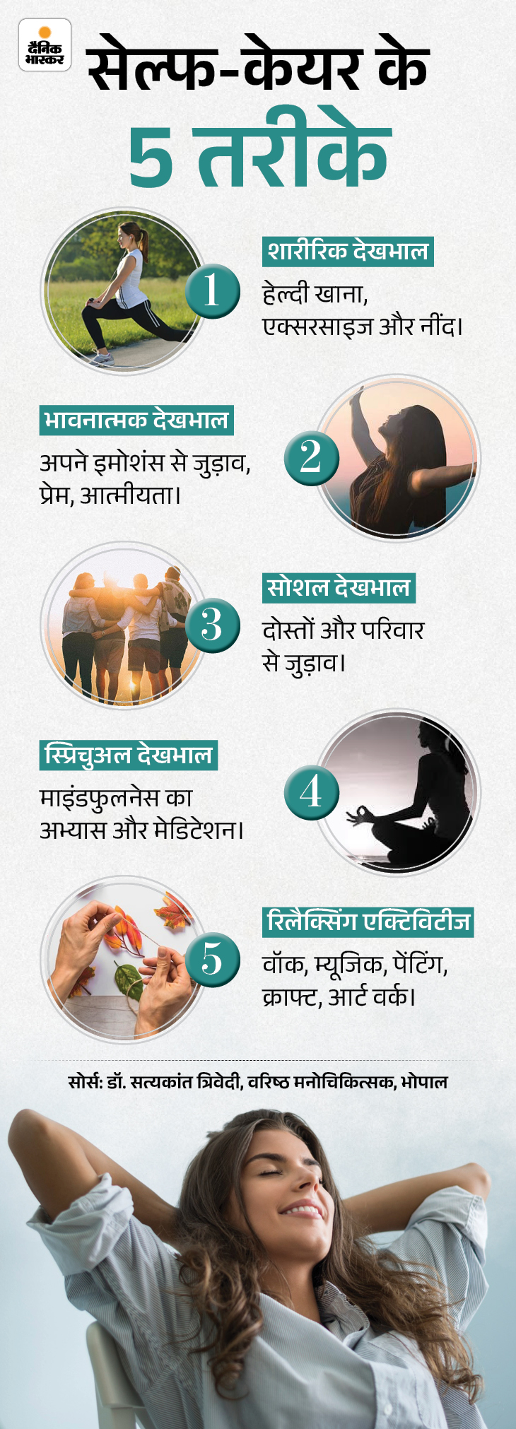 सेल्फ-केयर मुश्किल नहीं है। बस कुछ आसान तरीके अपनाएं और इसे रूटीन का हिस्सा बनाएं। ग्राफिक में देखिए-