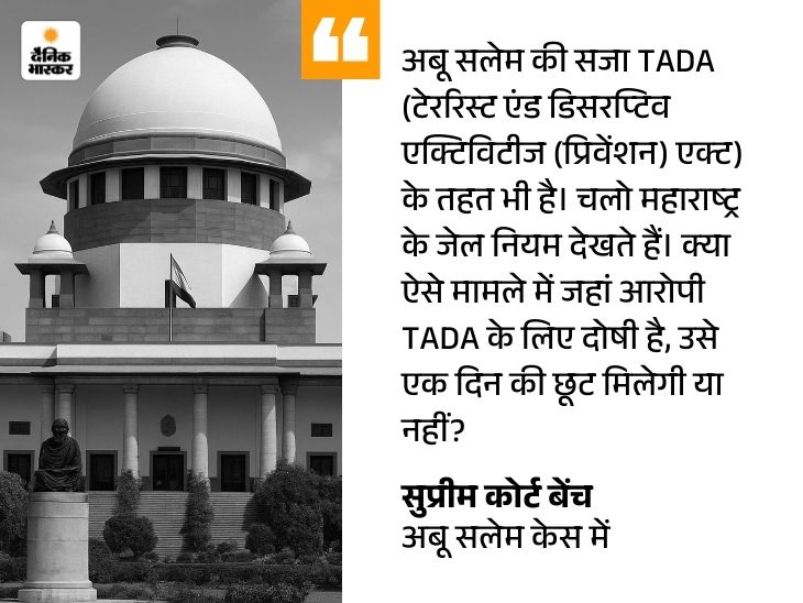 जस्टिस विक्रम नाथ और संदीप मेहता की बेंच ने सलेम के वकील से सवाल किया कि उसे किस तारीख से कस्टडी में लिया गया था। वकील ने बताया कि 11 नवंबर, 2005 को और कैलकुलेशन के मुताबिक अबू सलेम ने 25 साल की जेल पूरी कर ली है।