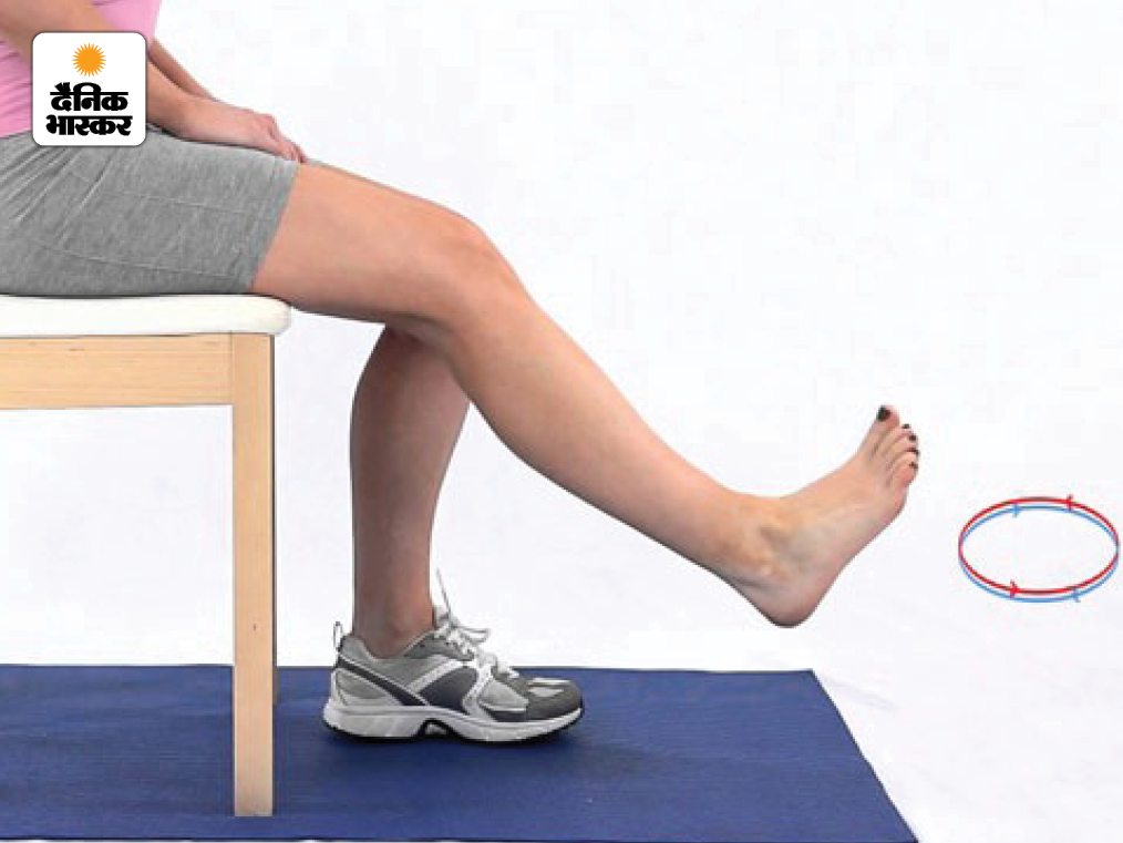 पैर को हवा में उठाकर टखने को गोल-गोल घुमाएं। घुटने और टखने के जॉइंट को लचीला बनाता है।