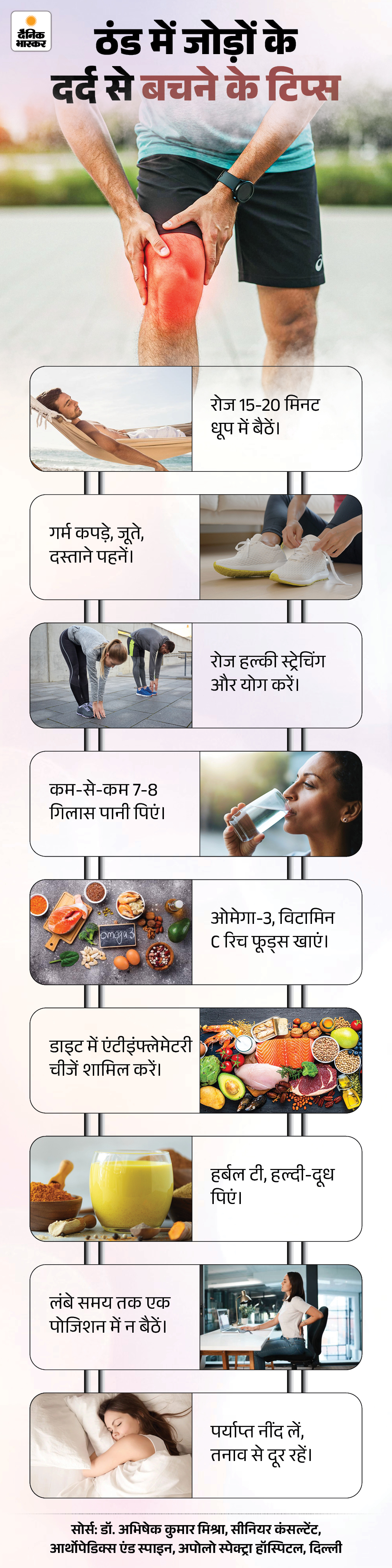 जवाब- डॉ. अभिषेक कुमार मिश्रा बताते हैं कि कुछ छोटी-छोटी लापरवाहियां सर्दियों में जोड़ों के दर्द को बढ़ा देती हैं। इसलिए इनसे बचना जरूरी है। जैसेकि-