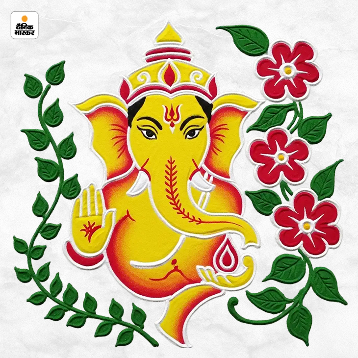 2. किसी पूजा-अर्चना से पहले भगवान गणेश की पूजा की जाती है। रंगोली में गणेश जी की सुंदर आकृति बनाई गई है। इसे बनाना आसान है और यह रंगोली बेहद सुंदर भी लगेगी।