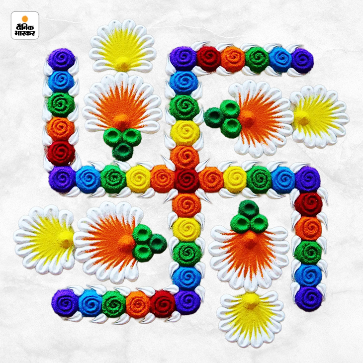 18. किसी पूजा की शुरुआत भगवान गणेश की पूजा-अर्चना से होती है। उनका प्रतीक स्वास्तिक बनाकर दिवाली की शुरुआत कर सकते हैं। स्वास्तिक बनाना आसान है और सुंदर भी लगेगा।