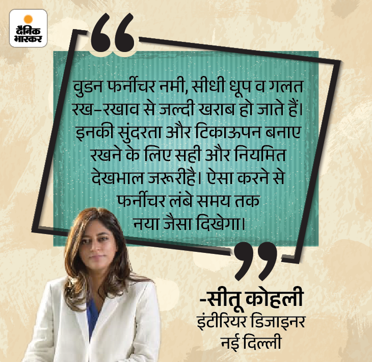 जवाब- वुडन फर्नीचर को खास देखभाल की जरूरत होती है। आमतौर पर हम फर्नीचर के साथ लापरवाही से पेश आते हैं। इस वजह से इनमें घुन लग सकती है, नमी की वजह से फंगस लग सकती है।