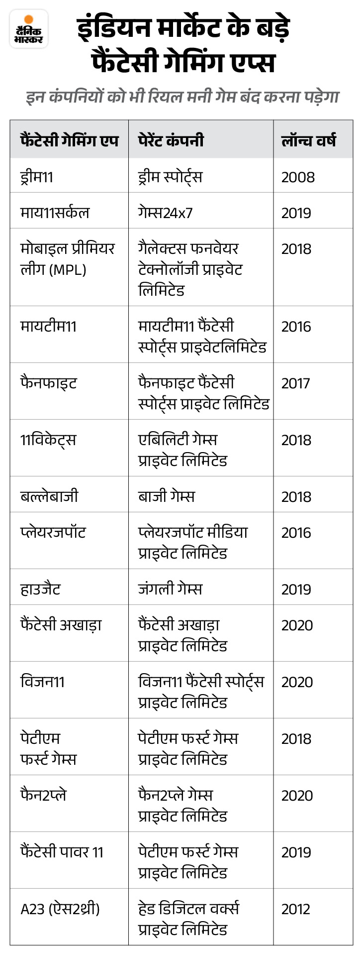 यहां यूजर्स पैसे लगाकर अपनी टीमें बनाते थे और जीतने पर कैश प्राइज पाते थे। नए बिल के तहत ये गेम्स अब गैरकानूनी हो गए हैं।