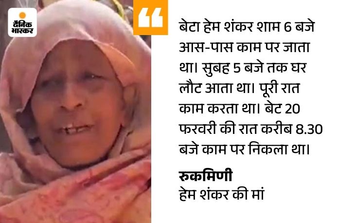 अब मृतक हेम शंकर की मां रुकमिणी का बयान सामने आया है। उन्होंने कहा कि अब मेरे पास कोई नहीं बचा, वही मेरा सहारा था। घटना वाली रात बेटे ने फोन करके कहा था कि खाना तैयार रखना, मुझे भूख लगी है।