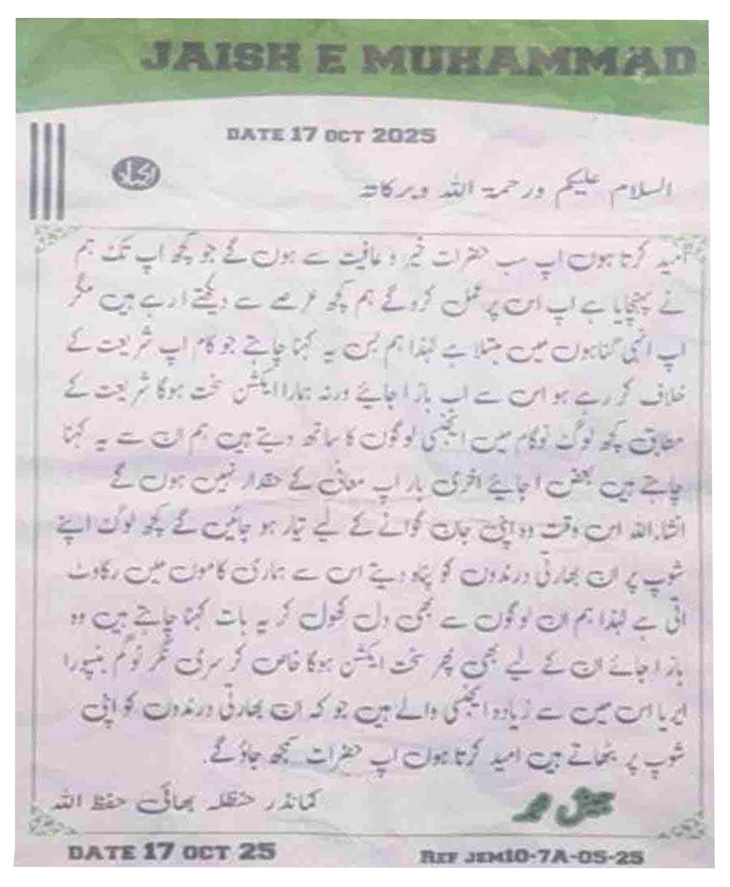 कमांडर हनजला भाई दिनांक: 17 अक्टूबर 2025