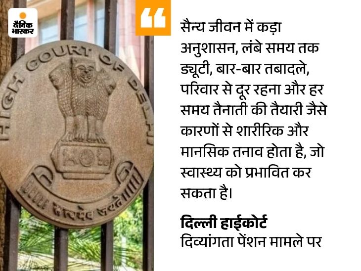 दिल्ली हाईकोर्ट ने गुरुवार को अहम फैसला सुनाते हुए कहा कि सशस्त्र बलों के कर्मियों की दिव्यांगता पेंशन को सिर्फ यह कहकर नहीं रोका जा सकता कि बीमारी ‘लाइफस्टाइल डिसऑर्डर’ है या वह पीस एरिया में तैनाती के दौरान हुई।