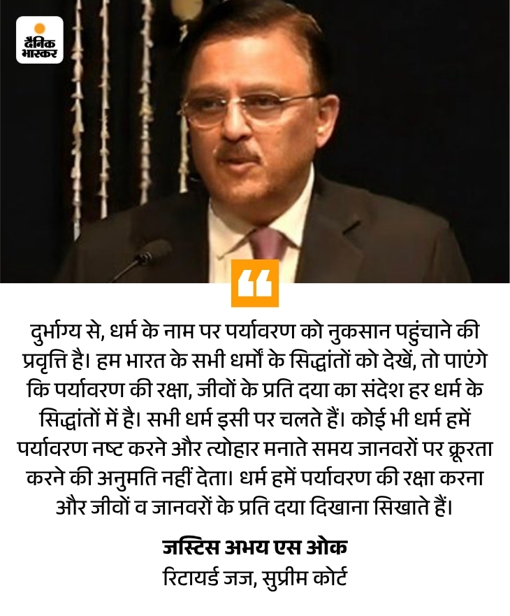 रिटायर जस्टिस ओक ने कहा- वायु और जल प्रदूषण को अनुच्छेद 21 के तहत मिले मौलिक अधिकारों का उल्लंघन माना जाना चाहिए, इसमें मानवीय गरिमा के साथ जीने का अधिकार भी शामिल है। मेरा विश्वास है कि जब तक आपके पास स्वस्थ वातावरण नहीं होगा, मानवीय गरिमा के साथ जीना असंभव है।