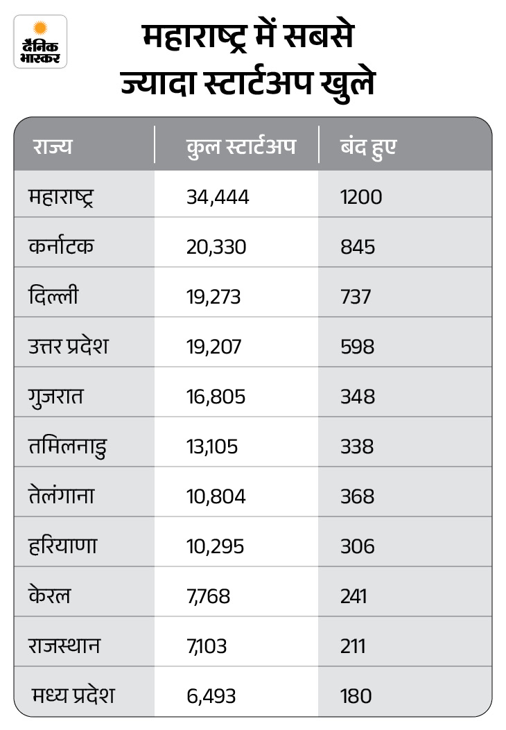 ऑनलाइन गेमिंग कानून लागू होने से 4 यूनिकॉर्न (ड्रीम11, एमपीएल, गैम्सक्राफ्ट, गैम्स24इनटू7) का दर्जा छिन गया। DPIIT के संयुक्त सचिव संजीव के मुताबिक, देश में बीते 10 सालों के दौरान 6,385 स्टार्टअप बंद हुए हैं। यह कुल स्टार्टअप का महज 3 फीसदी है। यह दर दुनिया भर में सबसे कम है।