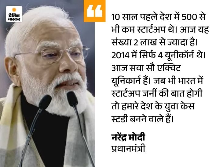 पीएम मोदी ने शुक्रवार को कहा कि भारत आज दुनिया का थर्ड लार्जेस्ट इको सिस्टम है। 10 साल पहले देश में 500 से भी कम स्टार्टअप थे, लेकिन आज 2 लाख से ज्यादा स्टार्टअप है।