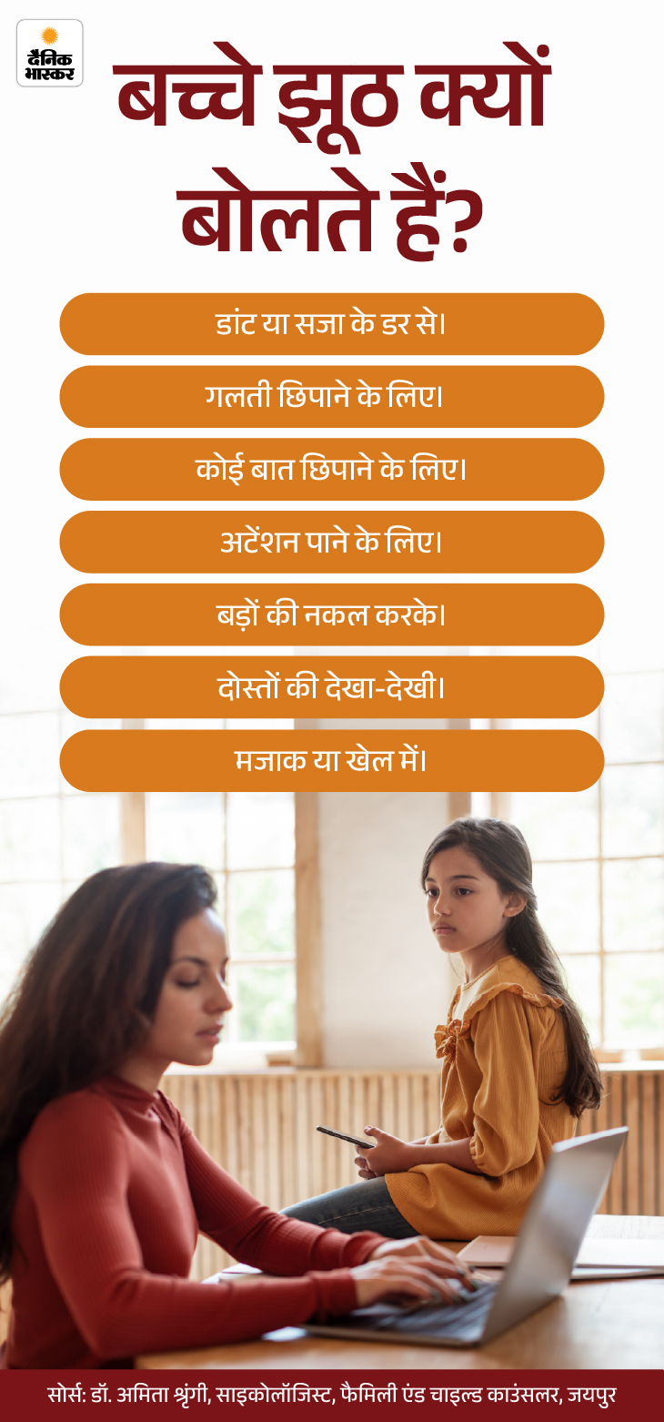 जवाब- मैं आपकी चिंता अच्छी तरह समझ सकती हूं। इस उम्र में बच्चे की झूठ बोलने की आदत पेरेंट्स को परेशान करती है, लेकिन सबसे पहले तो हमें ये जानना चाहिए कि बच्चों की दुनिया में सही और झूठ का कोई कॉन्सेप्ट नहीं होता है।