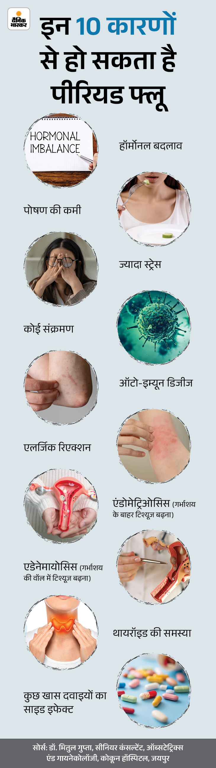जिस तरह सामान्य फ्लू के कई कारण हो सकते हैं, वैसे ही पीरियड फ्लू के भी कई कारण होते हैं। इसके सबसे कॉमन कारण ग्राफिक में देखिए।