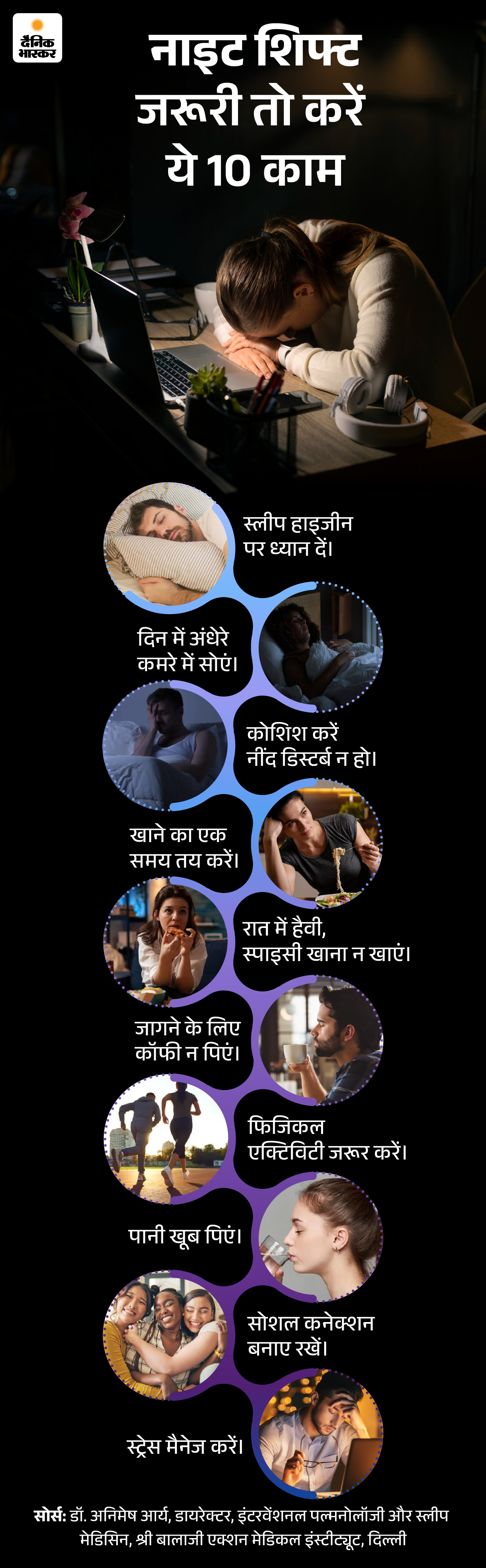 सवाल- अगर नाइट शिफ्ट में काम करना मजबूरी हो तो खुद को हेल्दी रखने के लिए क्या करना चाहिए?