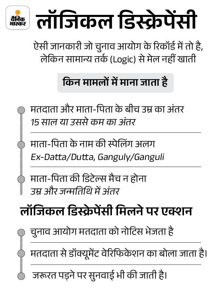 - द्विवेदी (ECI): हम स्पेलिंग की छोटी गलतियों पर नोटिस नहीं दे रहे हैं। कई बार उम्र का अंतर गलत एंट्री के कारण होता है। नोटिस का मतलब नाम हटाना नहीं, बल्कि मतदाता को सुधार का अवसर देना है। बूथ लेवल एजेंट (BLA) सभी राजनीतिक दलों से नियुक्त होते हैं।