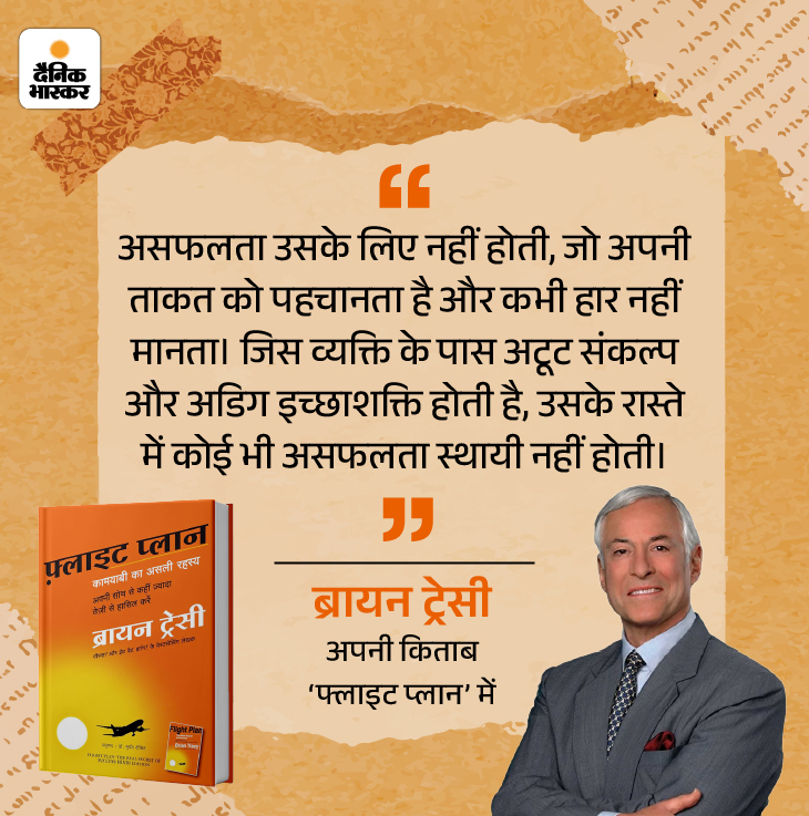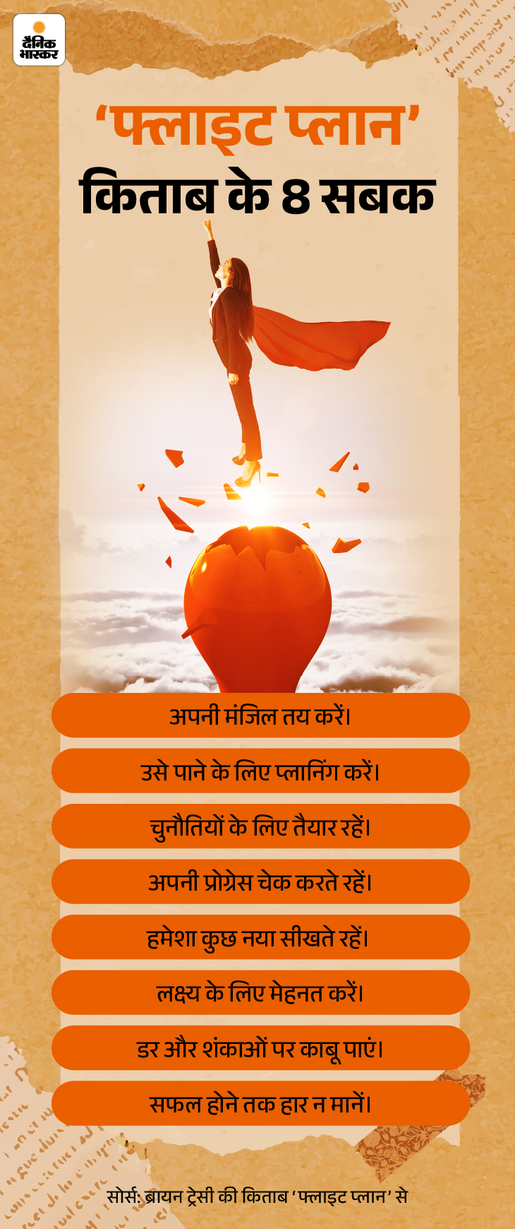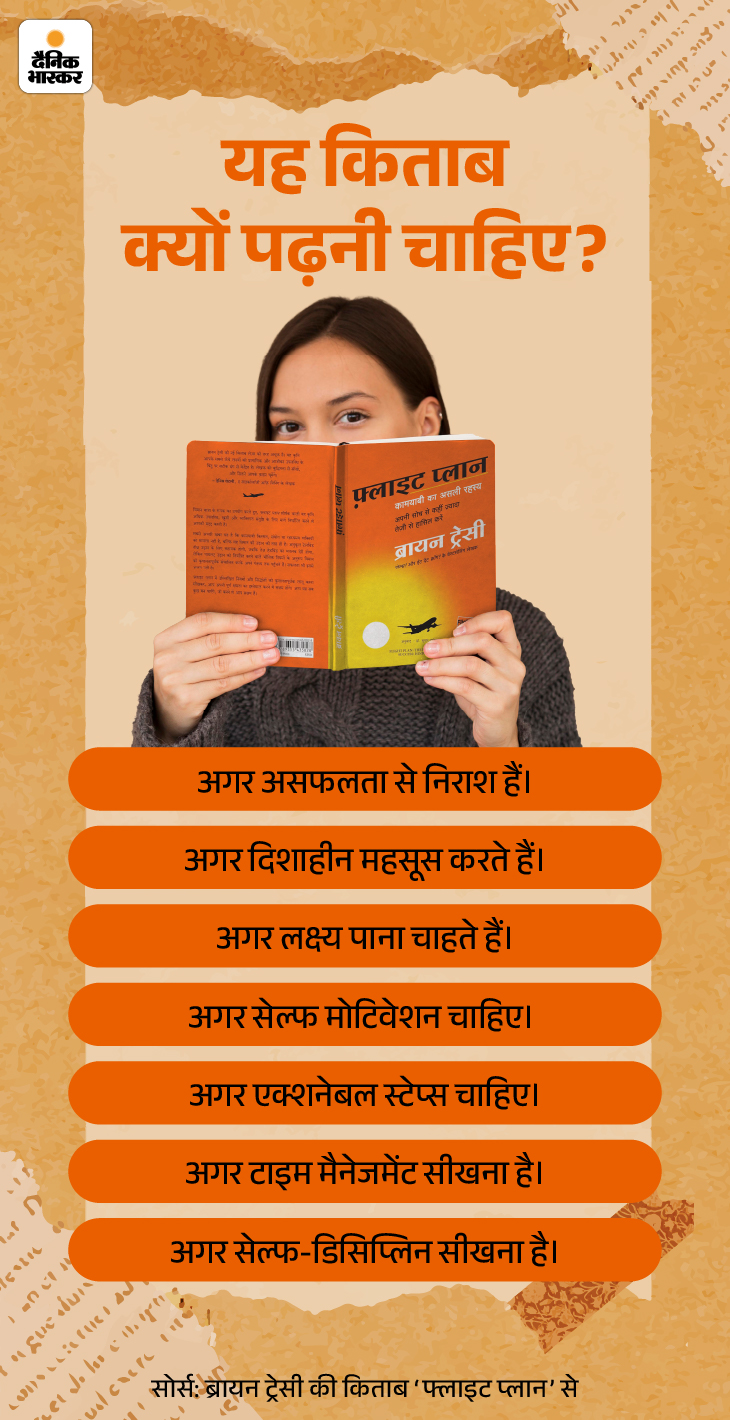 हम अपने जीवन में बहुत कुछ हासिल करना चाहते हैं, लेकिन अक्सर यह नहीं समझ पाते कि शुरुआत कहां से करें। इसी उलझन को सुलझाने के लिए मशहूर अमेरिकी मोटिवेशनल स्पीकर ब्रायन ट्रेसी ने ‘Flight Plan: The Real Secret of Success’ नाम से एक किताब लिखी है। इसका हिंदी अनुवाद ‘फ्लाइट प्लान: कामयाबी का असली रहस्य’ नाम से है।