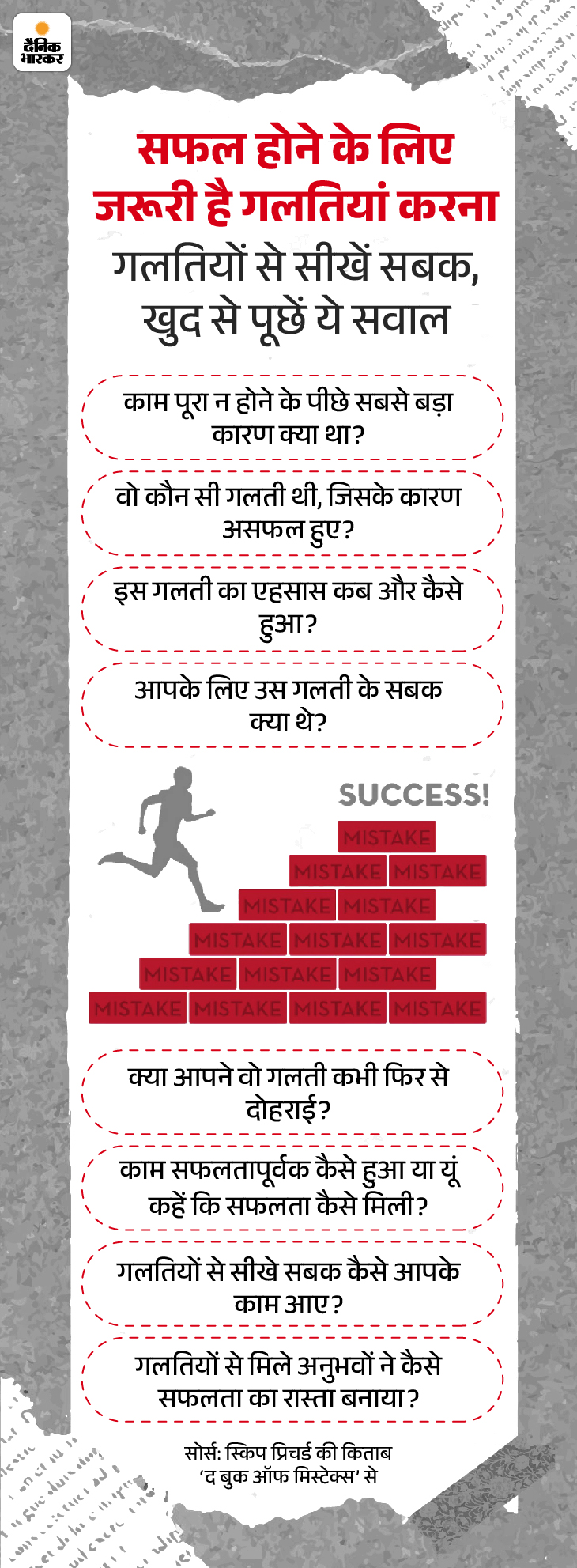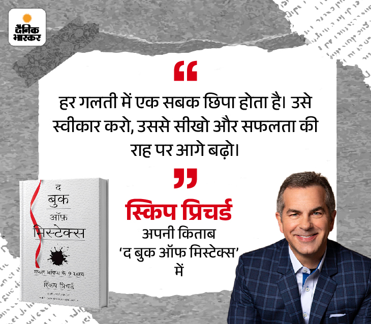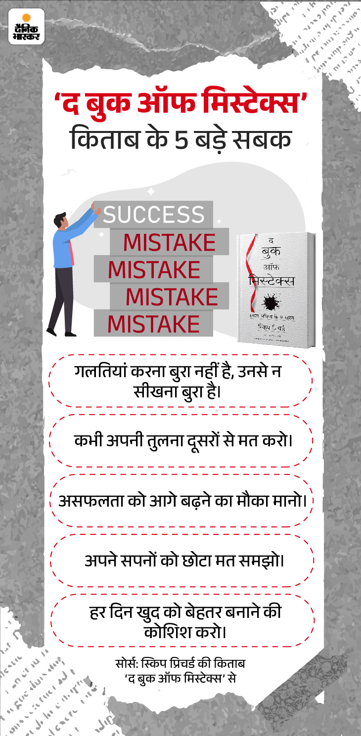 जिंदगी में हम सब गलतियां करते हैं। कभी-कभी ये गलतियां इतनी बार दोहराई जाती हैं कि हमें लगने लगता है कि सफलता शायद हमसे कोसों दूर है। लगभग हर कोई ऐसा महसूस करता है। जब आपके हाथ में स्किप प्रिचर्ड की किताब द बुक ऑफ मिस्टेक्स आएगी तो आपको एक नई उम्मीद दिखेगी। यह किताब न सिर्फ आपको आपकी गलतियों से रूबरू कराती है, बल्कि यह भी सिखाती है कि उनसे सीखकर आप अपनी जिंदगी को कैसे बदल सकते हैं।