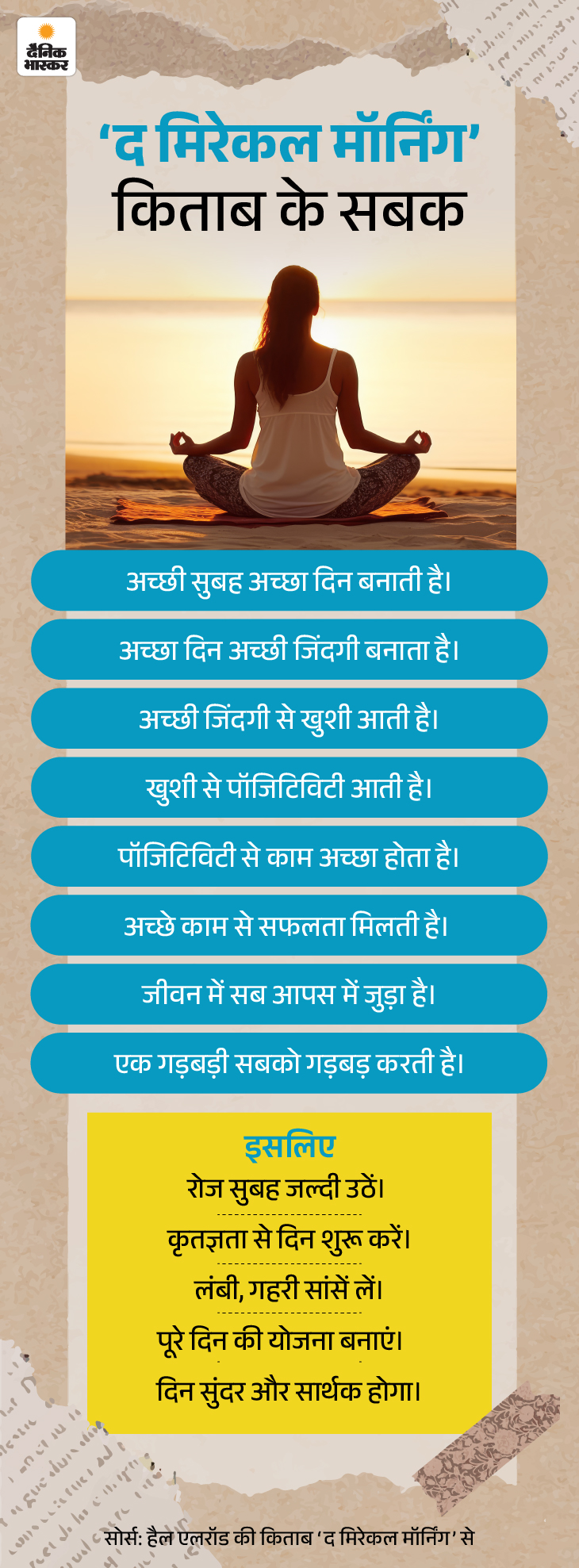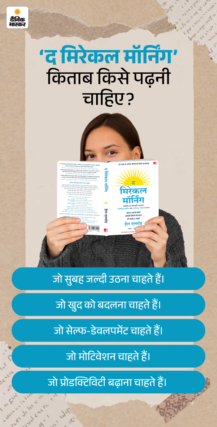 मशहूर अमेरिकी लेखक, स्पीकर और सक्सेस कोच हैल एलरॉड की किताब ‘द मिरेकल मॉर्निंग’ हमें यही सिखाती है। ये किताब बताती है कि कैसे सुबह जल्दी उठकर कुछ सरल आदतें अपनाने से हमारा पूरा दिन बदल सकता है।