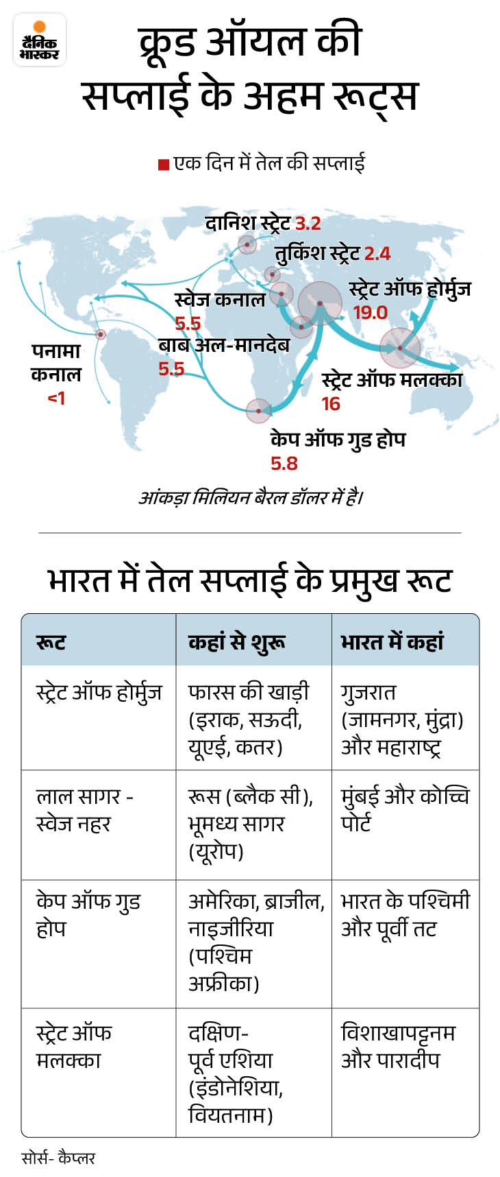 नया रूट: पहले भारत अपनी जरूरत का 60% कच्चा तेल होर्मुज के अलावा अन्य रास्तों से मंगाता था, जिसे अब बढ़ाकर 70% कर दिया गया है। इससे खाड़ी देशों में छिड़ी जंग का असर भारत की सप्लाई चेन पर कम पड़ेगा।