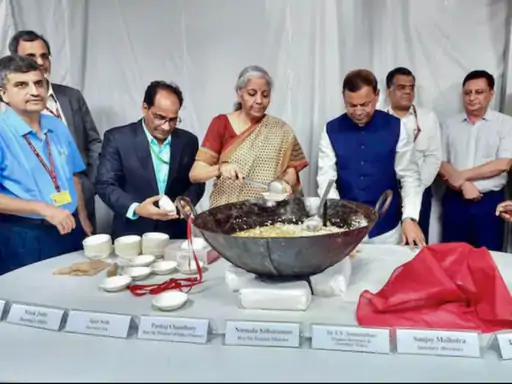 केंद्रीय वित्त मंत्री निर्मला सीतारमण ने मंगलवार (27 जनवरी) को पारंपरिक ‘हलवा सेरेमनी’ में हिस्सा लिया। यह रस्म बजट 2026-27 की तैयारी के अंतिम चरण का प्रतीक है। बजट 1 फरवरी को लोकसभा में पेश किया जाएगा।