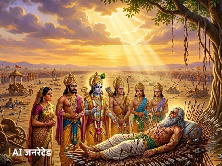 महाभारत का प्रसंग है। युद्ध का अंतिम समय चल रहा था। कौरवों और पांडवों के बीच भयंकर संघर्ष हो चुका था। कौरव सेना के लगभग सभी महारथी पराजित हो चुके थे और युद्ध अपने निर्णायक मोड़ पर था। उस समय महान योद्धा भीष्म पितामह बाणों की शय्या पर लेटे हुए थे, अपने अंतिम समय की प्रतीक्षा करते हुए।