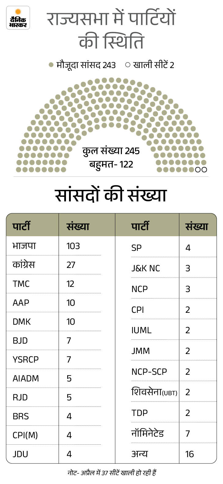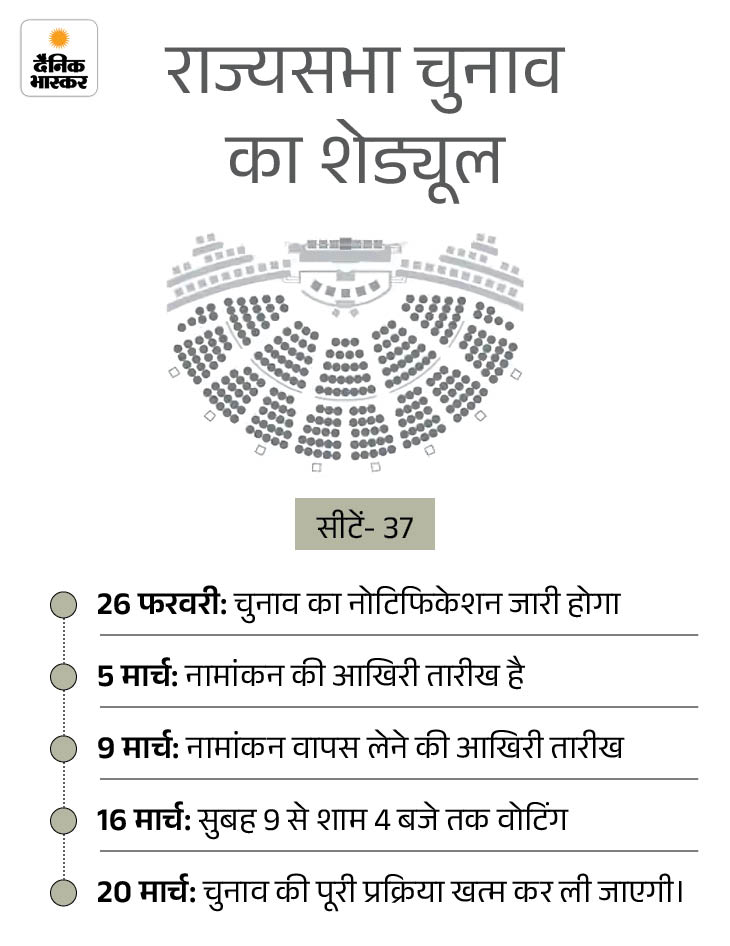 चुनाव आयोग ने 18 फरवरी को 10 राज्यों की 37 राज्यसभा सीटों पर चुनाव की तारीखों का ऐलान किया था। 37 सीटों के लिए 16 मार्च को चुनाव होना है। जो सीटें खाली हो रही हैं, उनमें 12 एनडीए के पास हैं, 25 पर विपक्ष का कब्जा है।