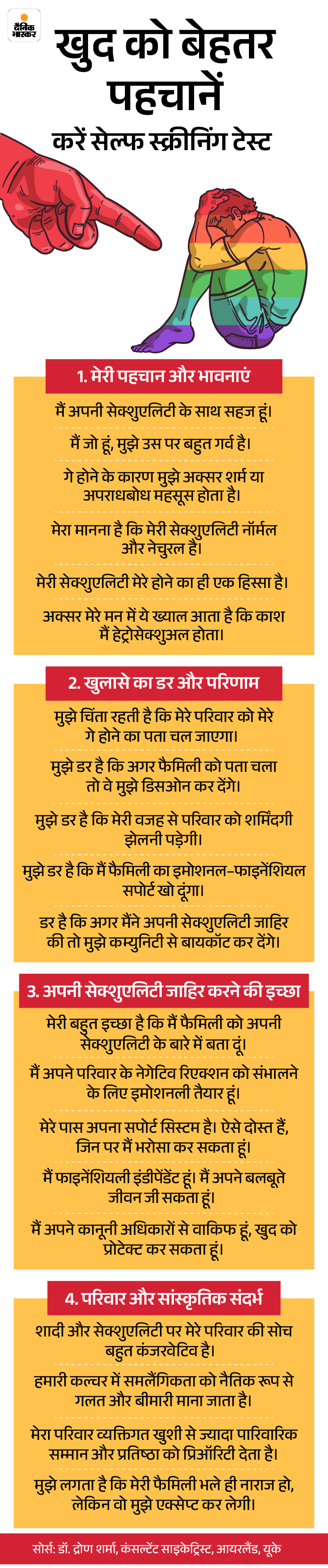 - कम स्कोर (Q3, Q6) बताते हैं कि आप समलैंगिकता को लेकर अपराध बोध से घिरे हैं।