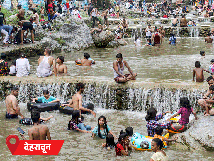 देहरादून: भीषण गर्मी के चलते पर्यटक सहस्त्रधारा झरना पहुंचे।