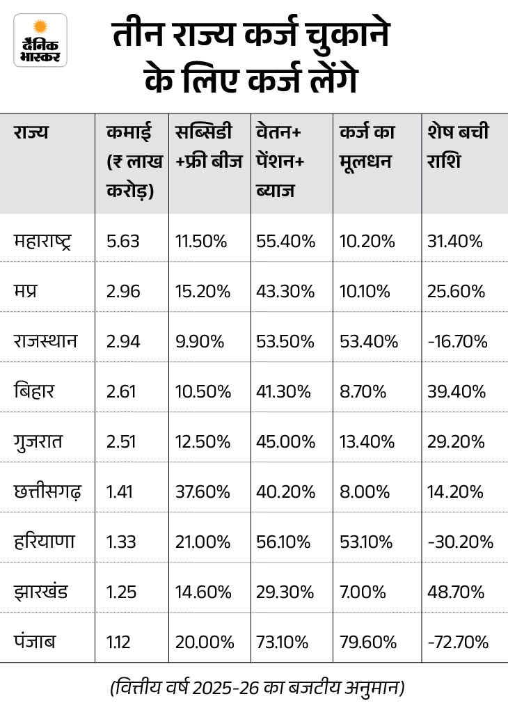 राजस्थान को इस बार ₹1.50 लाख करोड़ कर्ज का मूलधन चुकाना है। वह 32 हजार करोड़ रुपए कर्ज ले चुका है, लेकिन बकाया तो कर्ज लेने की सीमा से भी ज्यादा है। उसे कर्ज चुकाने के लिए भी कर्ज लेने की जरूरत पड़ेगी।