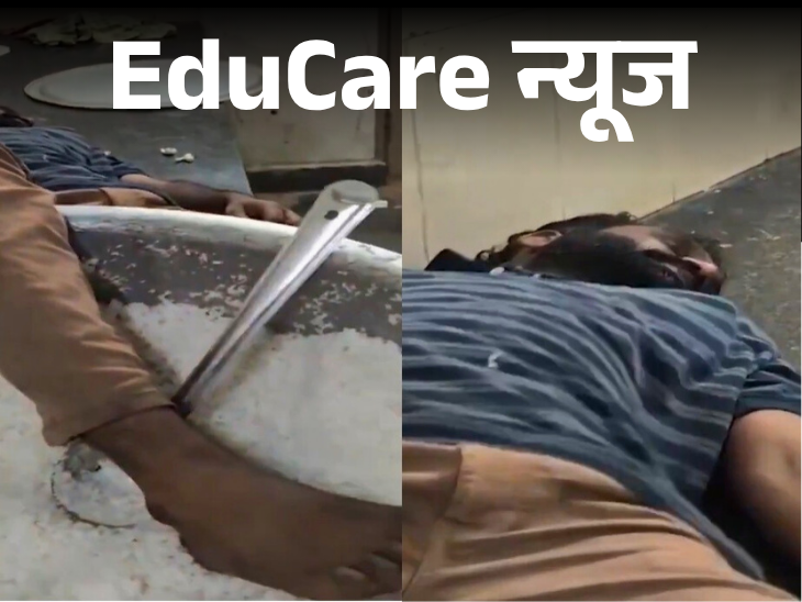 बच्चों के खाने में पैर डालकर सो गया चौकीदार-वीडियो वायरल: जगाने पर नशे में धुत मिला, स्टूडेंट्स भड़के; जिला कलेक्टर ने नौकरी से हटाया