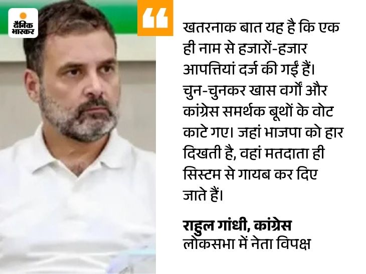 राहुल ने दावा किया कि कांग्रेस को समर्थन देने वाले खास समुदायों और बूथों से चुन-चुनकर वोट हटाए गए। जहां-जहां भाजपा को हार का अंदेशा होता है, वहां मतदाताओं को सिस्टम से ही गायब कर दिया जाता है।