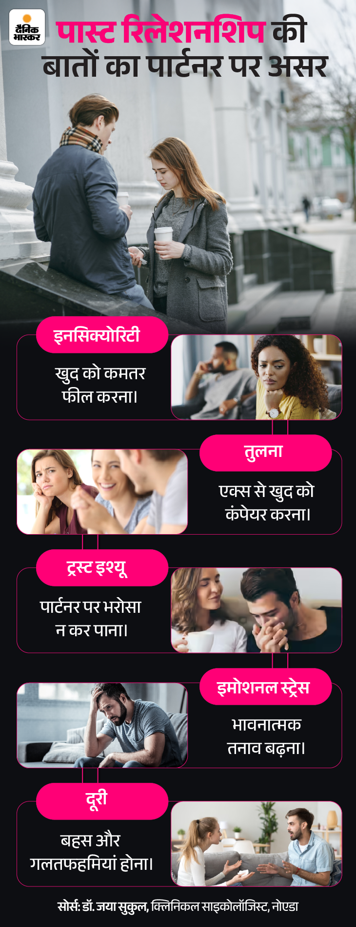 हर बार जब वो अपनी एक्स की तारीफ करता है या पुरानी बातें शेयर करता है, आपको लगता है कि वो आपको अपनी एक्स से तुलना कर रहा है। ये डर रिश्ते में जलन और गलतफहमी पैदा करता है।