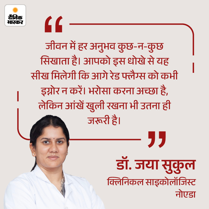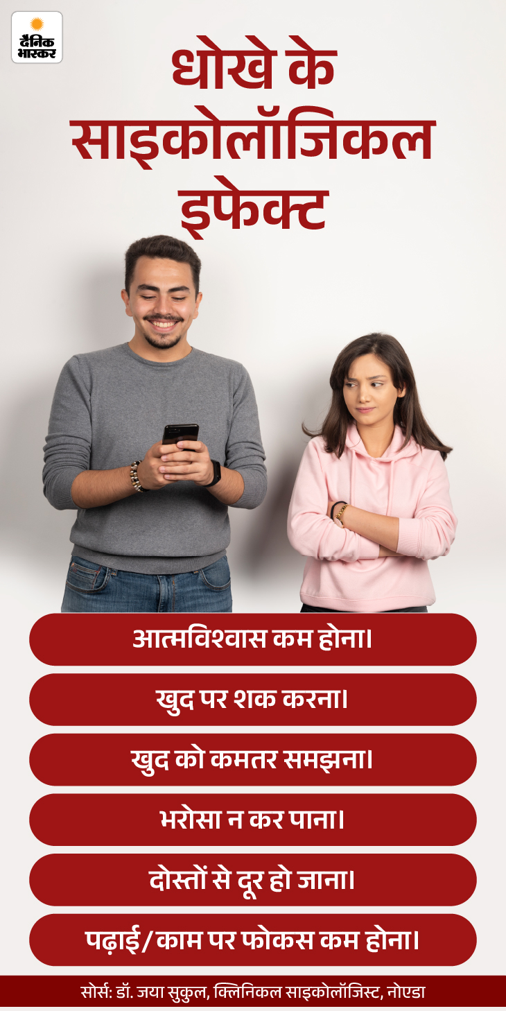 आपको लग रहा होगा कि शायद आपकी कोई गलती थी, आप में कोई कमी थी या आपने गलत चुनाव किया। लेकिन ऐसा नहीं है। धोखा देने वाला हमेशा अपनी कमजोरी छुपाता है। आपकी इनसिक्योरिटी नॉर्मल है। पहला धोखा लोगों को सालों तक परेशान करता है। लेकिन अच्छी बात ये है कि आपने इसे जल्दी पकड़ लिया है।