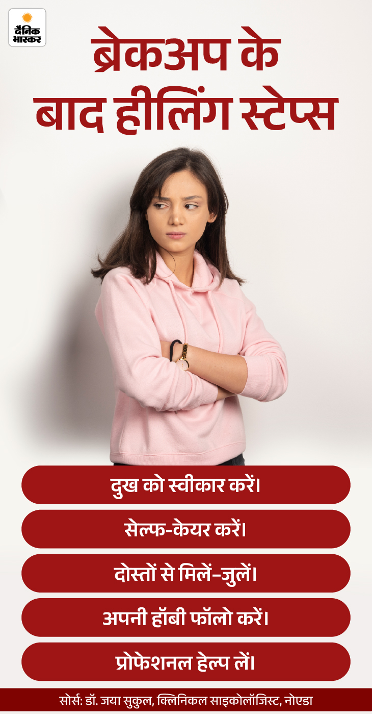 ब्रेकअप के बाद दुख आएगा। और रोना आए तो रोएं, जर्नल लिखें, दोस्तों से बात करें, लेकिन खुद को दोष न दें।