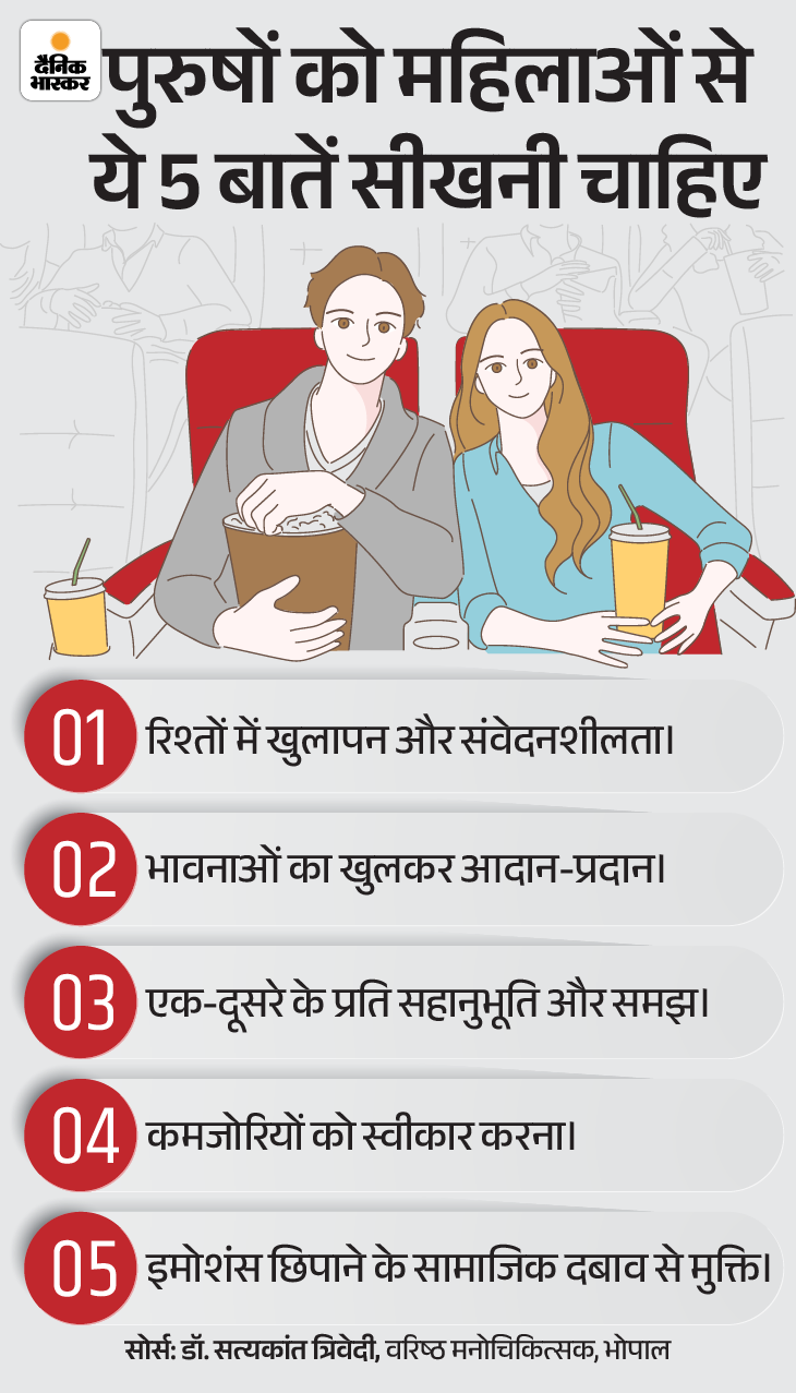 कमजोरियों को स्वीकार करना: महिलाएं अपनी कमजोरियों को स्वीकार करती हैं और दूसरों से मदद लेने में संकोच नहीं करतीं। इससे उनके रिश्तों में भरोसा और आत्मीयता बढ़ती है। ऐसे में पुरुषों को भी अपनी कमजोरियों को स्वीकारने की जरूरत है।