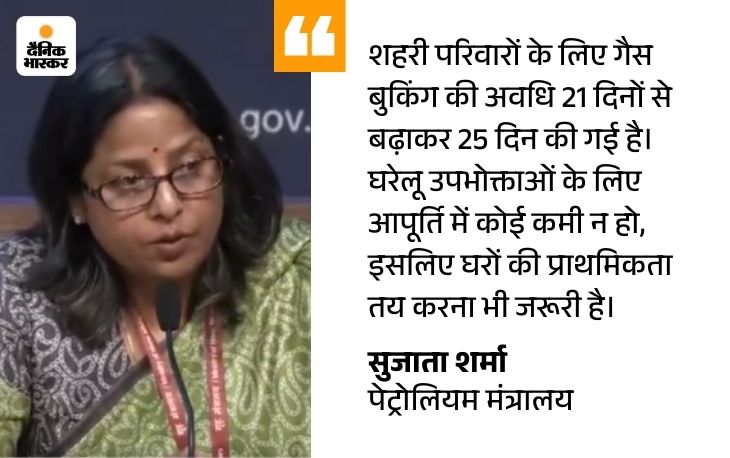 पेट्रोलियम और प्राकृतिक गैस मंत्रालय में संयुक्त सचिव सुजाता शर्मा ने कहा कि भारत अपनी जरूरत का करीब 60% LPG आयात करता है, जिसमें से लगभग 90% सप्लाई स्ट्रेट ऑफ होर्मुज से आती है। देश में रोजाना करीब 50 लाख LPG सिलेंडर की डिलीवरी की जाती है।