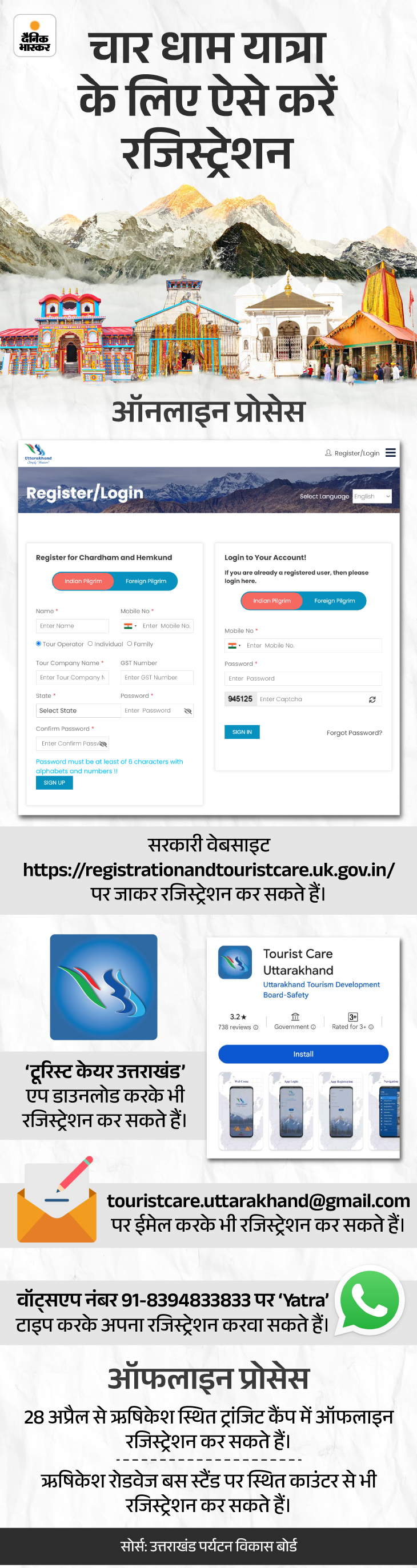 - इसलिए यात्रा शुरू करने से पहले चारधाम यात्रा की आधिकारिक वेबसाइट या ‘Tourist Care Uttarakhand’ एप से रजिस्ट्रेशन जरूर करवा लें।