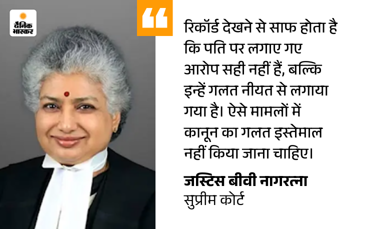 इस पर जस्टिस नागरत्ना ने कहा कि अगर पति ने गर्भावस्था या बच्चे के जन्म के बाद पत्नी की ठीक से देखभाल नहीं की या उसके वजन को लेकर ताने मारे तो यह उसका गलत और असंवेदनशील व्यवहार हो सकता है।