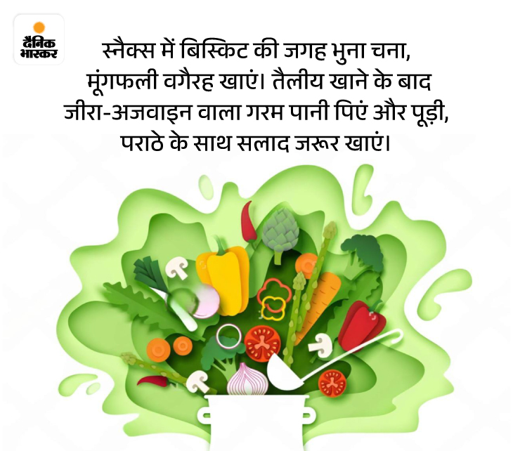 - डिनर सोने से कम-से-कम 3 घंटे पहले करें। देर रात भूख लगे तो दही के साथ भुना चना या खीरे के साथ पनीर लें, चाय-बिस्किट नहीं।