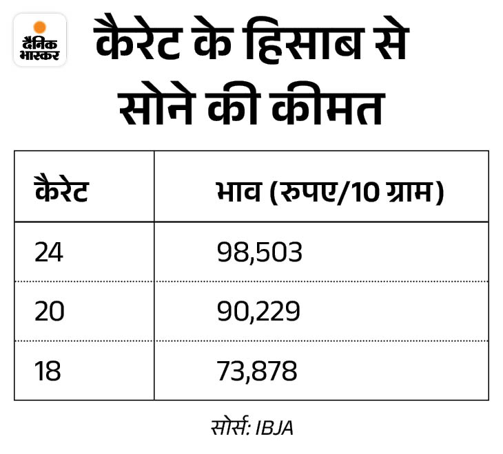 - दिल्ली: 24 कैरेट सोने की कीमत ₹1,00,630 और 22 कैरेट सोने की कीमत ₹92,250
