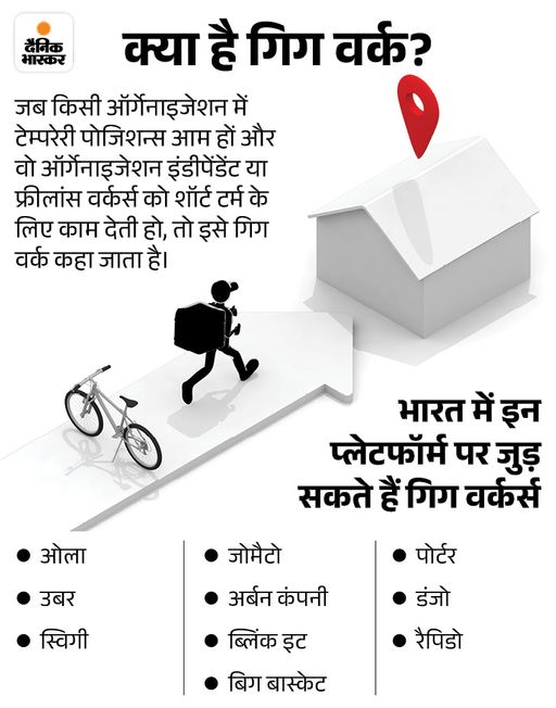- भारत में लगभग 80 लाख से ज्यादा लोग गिग इकोनॉमी (डिलीवरी, कैब आदि) से जुड़े हैं।