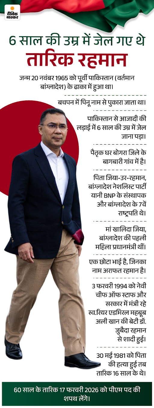 बांग्लादेश चुनाव में BNP को भारी बहुमत मिलने के बाद पार्टी के चेयरमैन तारिक रहमान 17 फरवरी को प्रधानमंत्री की शपथ लेने वाले हैं।