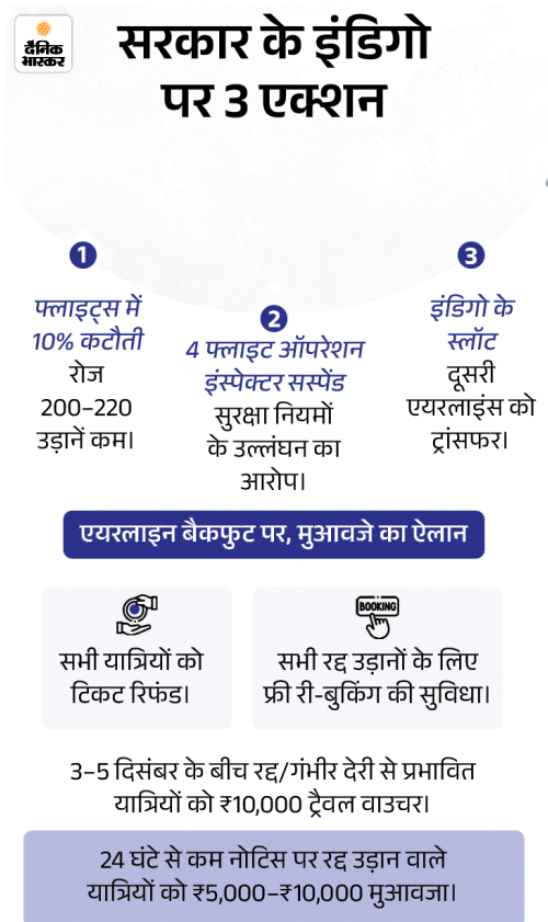 DGCA ने यह एक्शन 3 से 5 दिसंबर, 2025 के बीच इंडिगो की 2507 फ्लाइट के कैंसिल होने और 1852 फ्लाइट के ऑपरेशन में देरी होने पर लिया है। इस कारण 3 लाख से ज्यादा यात्रियों को परेशानी हुई थी।